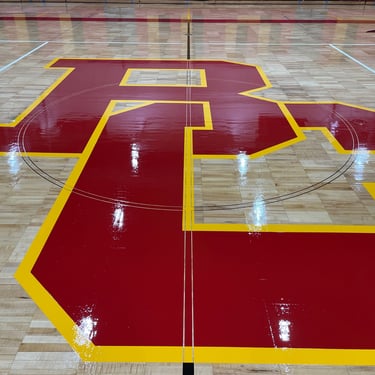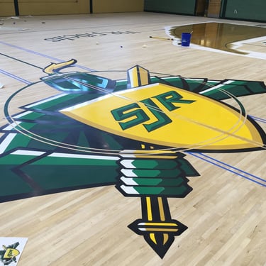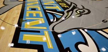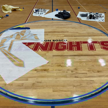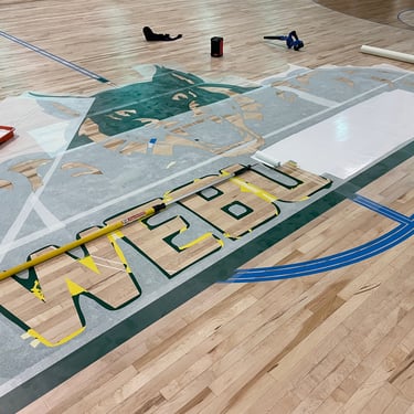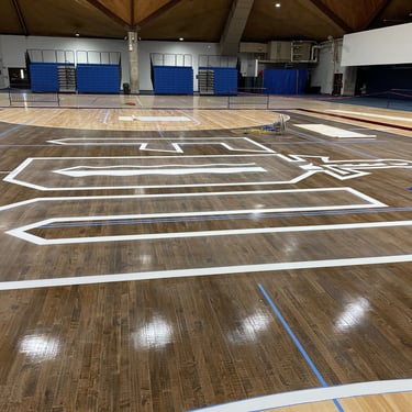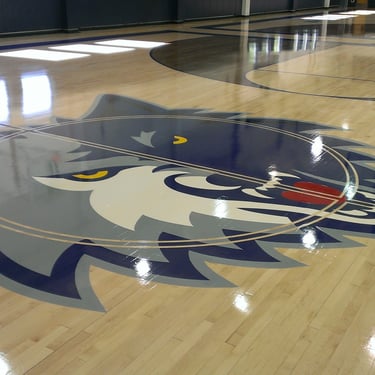 Elevate your gym appearance with our premium graphics and game line painting. Our expert team specializes in producing high-quality logos, letterings, stains and game line painting that will transform your gym floor into a modern and inspiring facility. Madison Sport Floors combine the use of state-of-the-art technology with traditional artistic methods passed down through the years.